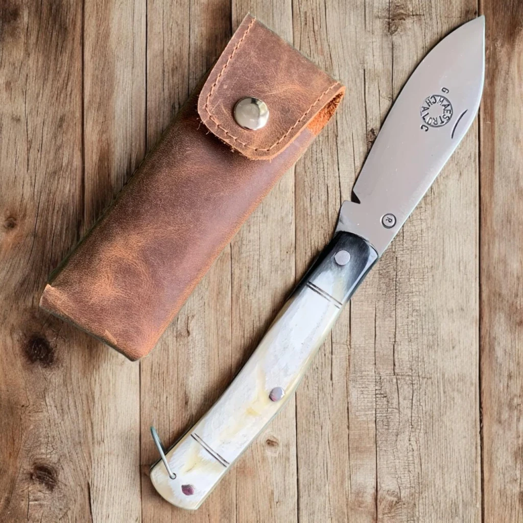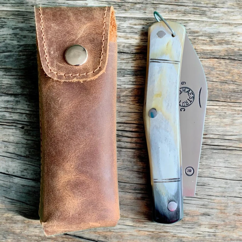 Esta clásica cortapluma es el símbolo del que sabe de campo... Hecha a mano con mango de cacho y acero inoxidable con un filo monstruoso. Perfecta para usar en el campo, en la parrilla o simplemente para tener un pedacito de Chile en el bolsillo.
