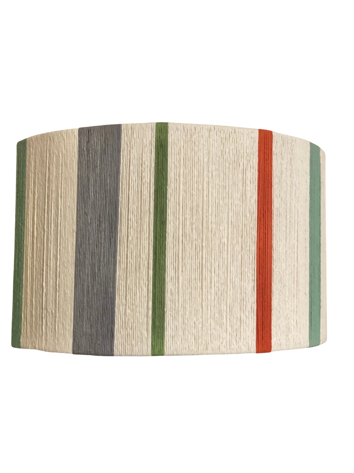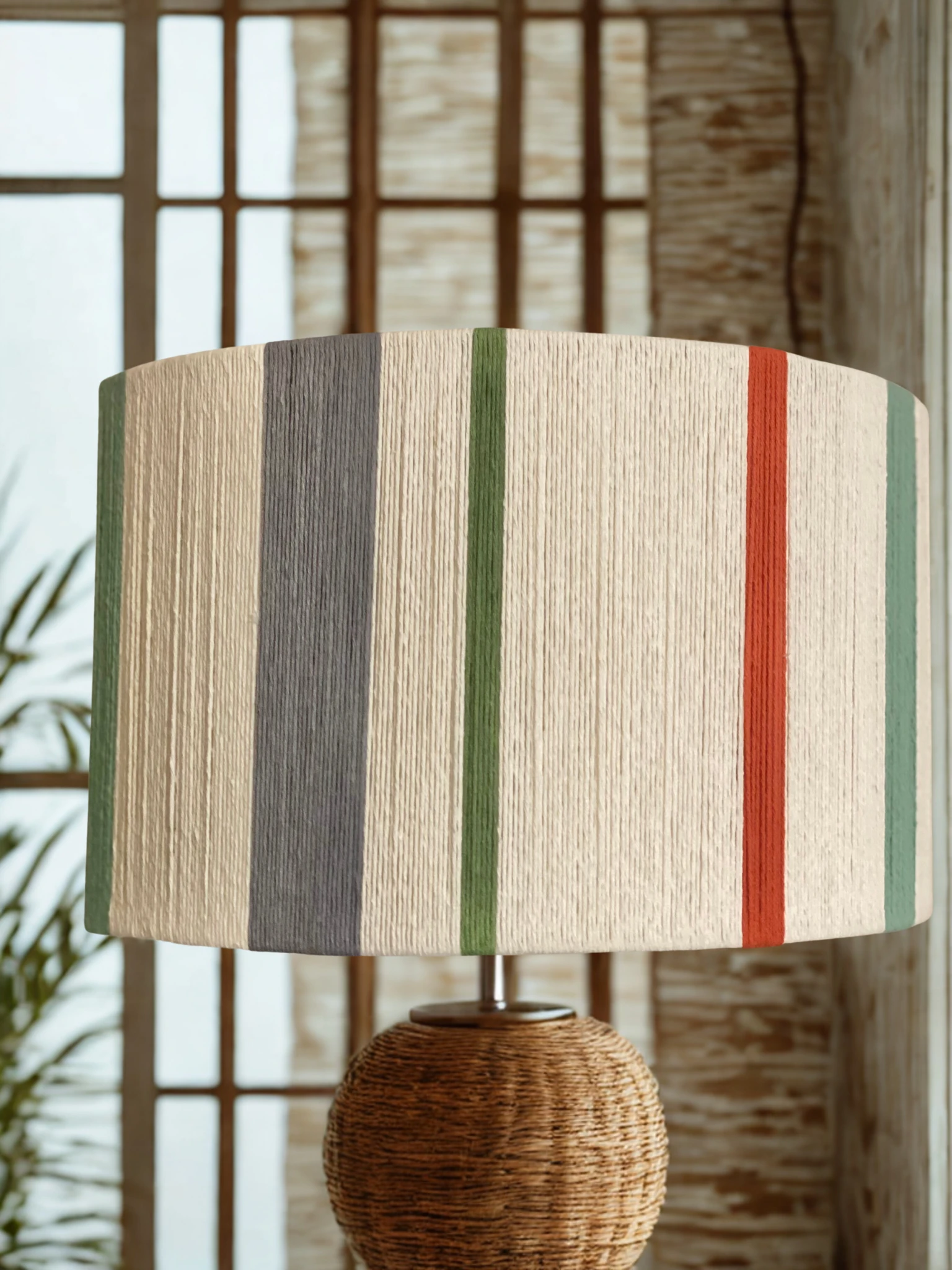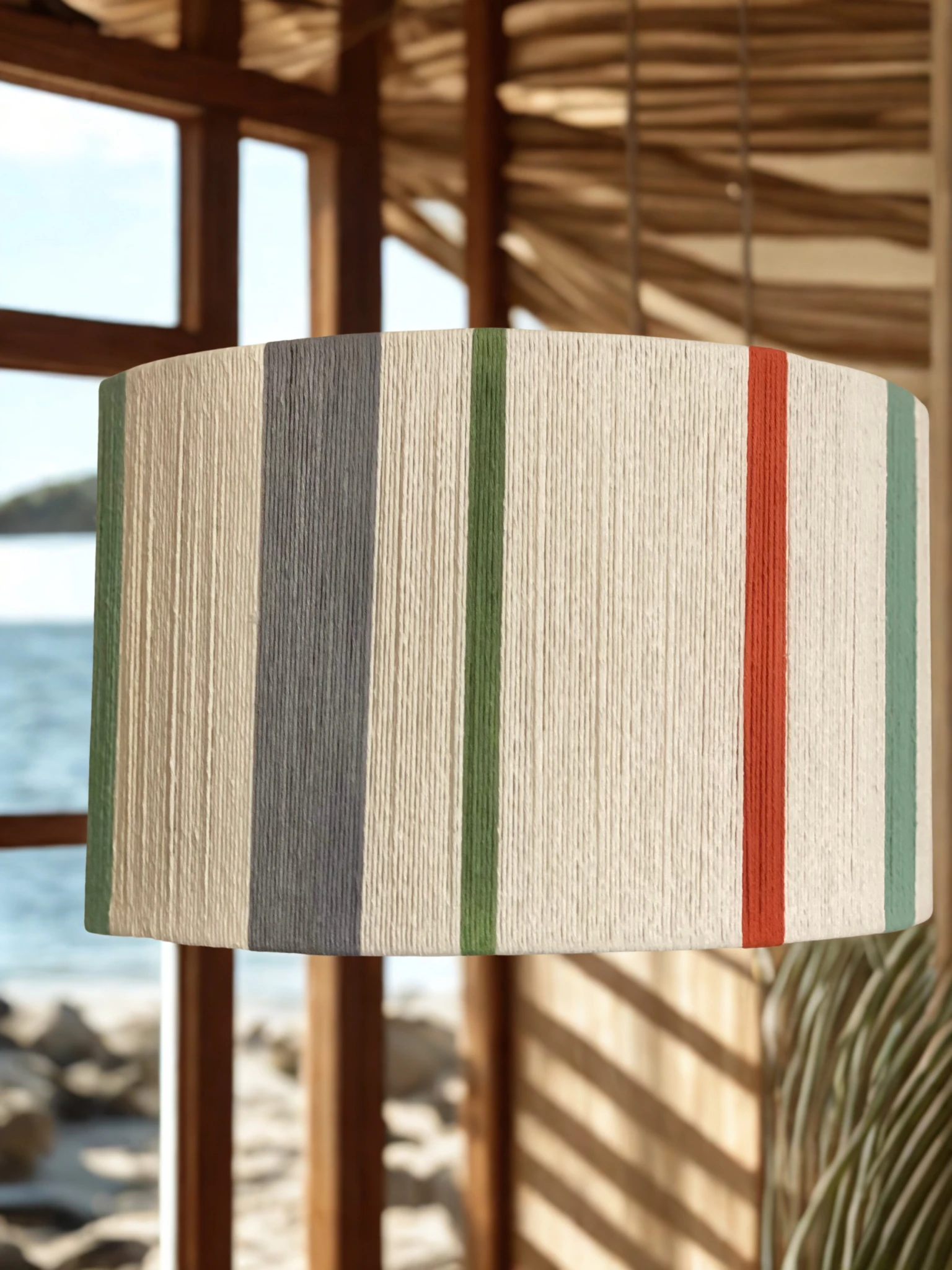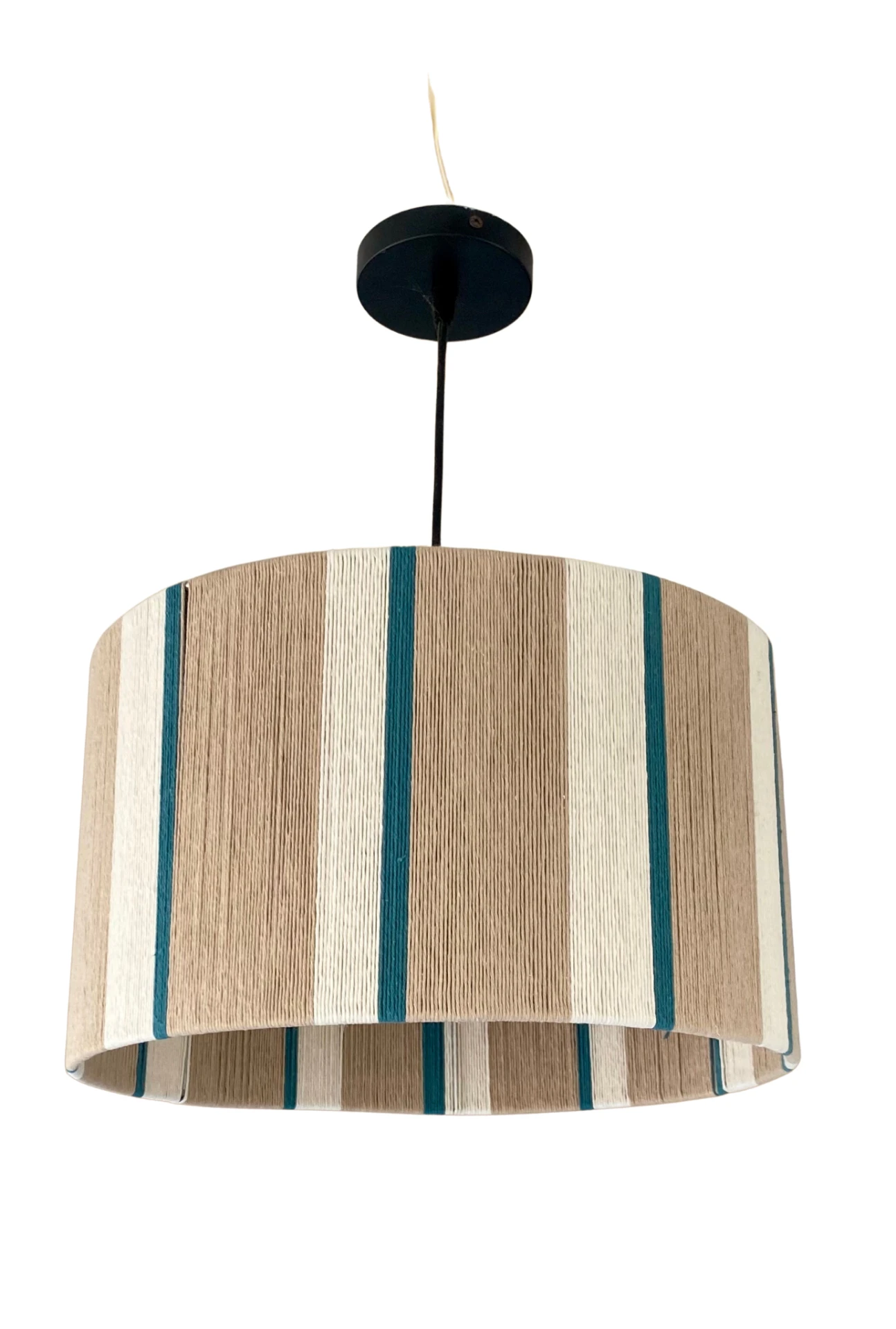 Pantalla cilindrica hecha a mano con hilos 100% algodon, armazón de alambre galvanizado de 3 mm.